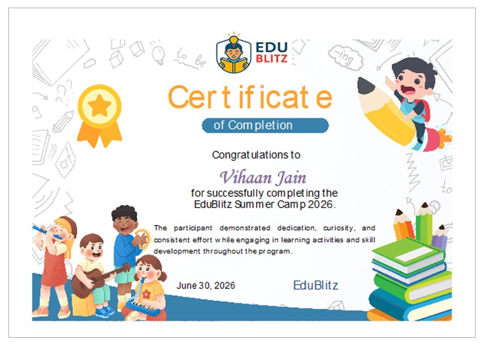 Every student who completes the course will receive an official EduBlitz Certificate of Completion, recognizing their learning and participation in the summer program.